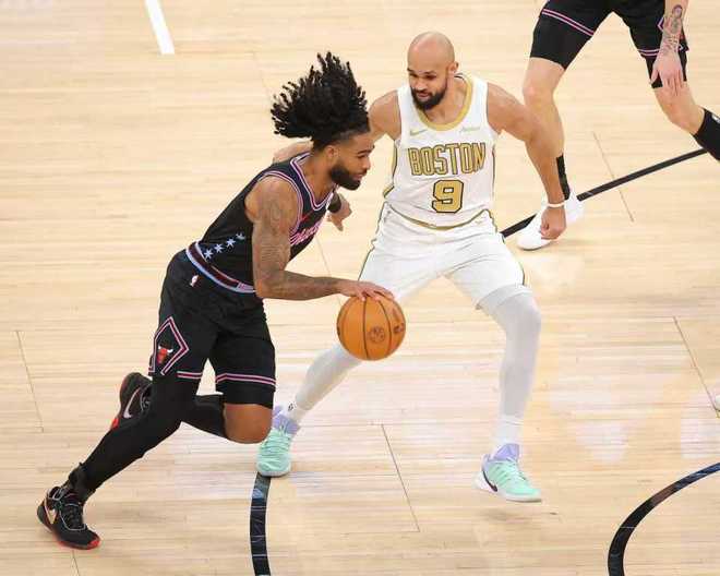 凯尔特人过去两场连赢步行者与篮网收获2连胜,公牛过去3场连赢篮网、快船与森林狼收获3连胜,本赛季首次交锋凯尔特人主场115-101战胜公牛。本场凯尔特人缺少塔图姆与米诺特,公牛缺少科林斯、琼斯。首节前3分半钟双方缠斗至凯尔特人13-12领先,公牛连得4分反超,布朗上篮追分。公牛接连得分逐步扩大6分领先优势,凯尔特人内外开花咬住比分,首节结束凯尔特人28-30落后。首节凯尔特人三分11中4,布朗7中4得到11分;公牛三分14中6,吉迪与武切维奇合计3中0得到0分。