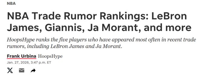 由于湖人近5战4胜,加上詹姆斯手握交易否决权,他入选榜单让人有些意外。