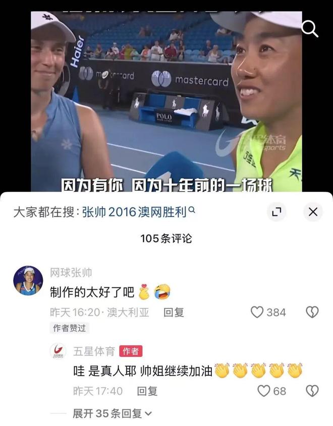 五星体育的报道中张帅本人也给予了回应,期待她能更进一步,闪耀澳网!