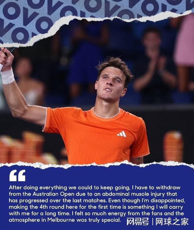 2026年澳网的戏剧性场面在网球界引起了广泛讨论。德约科维奇连胜三场打进第四轮后,连续两场比赛都以对手退赛的方式晋级。捷克新星门希克因腹部肌肉撕裂,经医疗团队评估后选择