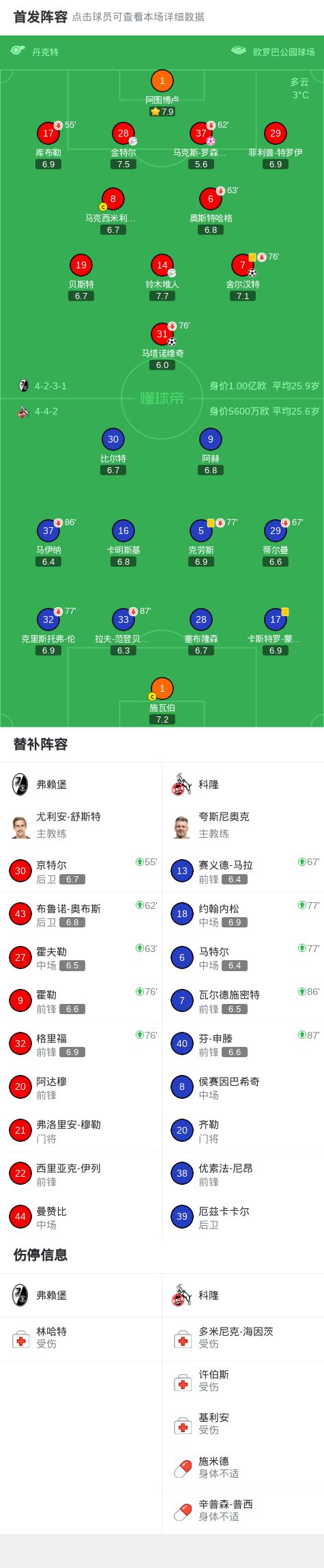 - 北京时间1月26日德国足球顶级联赛联赛第19轮,弗赖堡主场对阵科隆。弗赖堡首发:贝斯特, 铃木唯人, 马塔诺维奇,...发表于: 01-26 08:15
