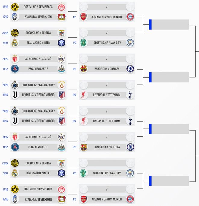 在附加赛中获胜的八支俱乐部将晋级16强,与直通的8支队一起,组成本赛季欧冠16强的最终阵容,16强抽签将于2026年2月27日举行。