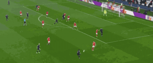 第58分钟,居莱尔冷静晃过防守后将球传到中路,本菲卡点球点附近完全漏人,姆巴佩梅开二度。
