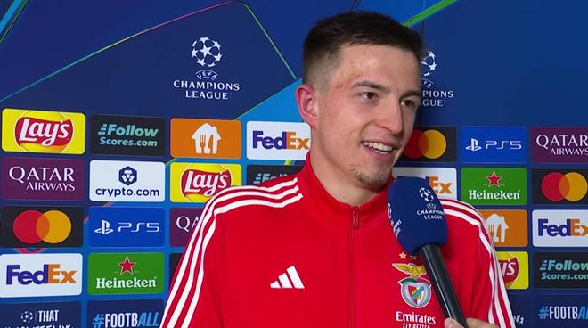 欧冠联赛阶段第8轮,本菲卡主场4-2战胜皇马,最后时刻攻入一球帮助球队晋级欧冠淘汰附加赛的本菲卡门将特鲁宾赛后接受了TNT体育的采访。