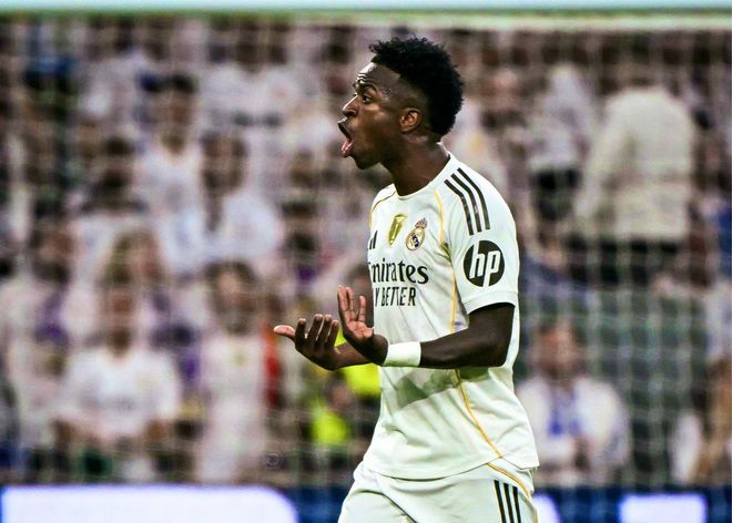 雷速体育11月2日讯 在今日凌晨皇马4-0大胜瓦伦西亚的比赛中,上半场第43分钟,A费禁区内倒地造点,维尼修斯向队内头号点球主罚手姆巴佩手中要走了皮球,随后主罚点球被瓦伦西亚门