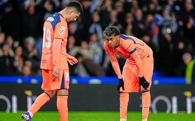 比赛从开场便被VAR影响,短短半小时内上演了四次关键判罚反转。第1分钟奥亚萨瓦尔的破门因越位被吹,仅6分钟后巴萨费尔明的远射又因奥尔莫抢断犯规被取消。随后德容的垫射、亚马尔的混战破门接连因越位失效,其中亚马尔的进球被裁判专家认定为轻微越线,属于精准的技术判罚。上半场补时阶段,亚马尔禁区内被放倒获得点球,正当巴萨准备扳平比分时,VAR再次介入判定其接球时越位,点球被撤销。连续的判罚不仅打乱了巴萨的进攻节奏,更消磨着球队的士气,主帅弗利克场边凝重的神情,预示着这场客场之旅的艰难。