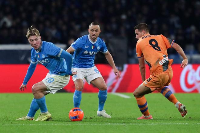 斯坦尼斯拉夫-洛博特卡对这种感觉再熟悉不过。每次代表那不勒斯踏上球场,他都会置身于这样的“小巷”之中。这种在拥挤中控球、肩负疏导球队重任的场景,足以压垮许多球员,但洛博特卡却游刃有余。