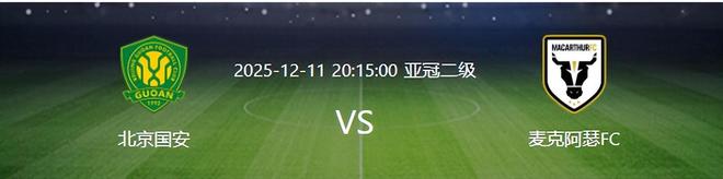 - 北京时间2025年12月11日晚,亚冠二级联赛小组赛第六轮的比赛继续进行,北京国安在主场迎战澳超球队麦克阿瑟FC队...发表于: 12-12 08:13