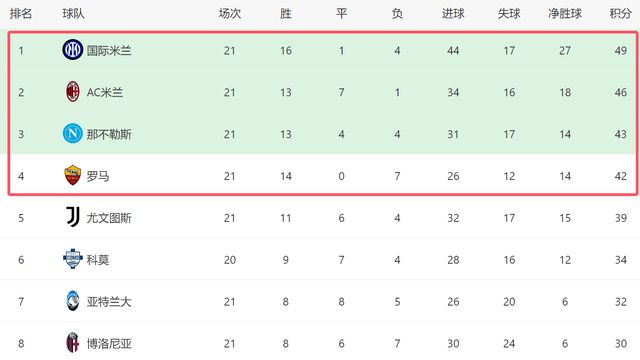 10!榜首4强全胜,意甲争冠大局:米兰差国米3分,1劲旅成黑马