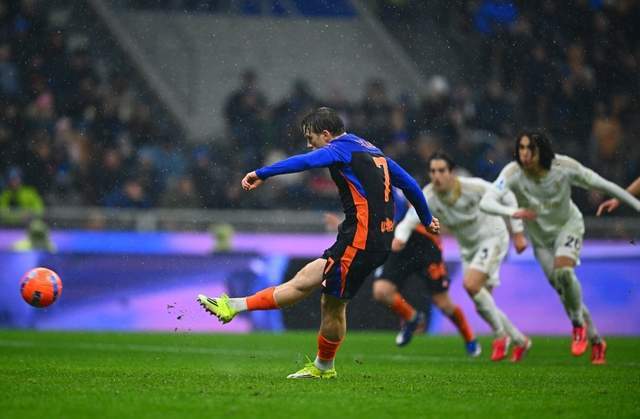 第39分钟,国米迎来转机!泽林斯基禁区外劲射,被特拉莫尼封堵,但后者禁区内手球,裁判判罚点球!泽林斯基亲自操刀命中,蓝黑军团扳回一城,1-2!