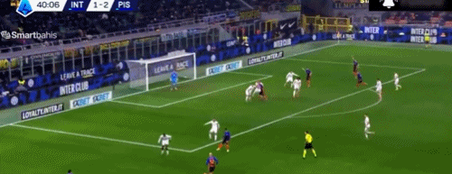 第70分钟,巴斯托尼左路传中,奥古斯托禁区内凌空扫射,稍稍高出横梁,比萨门前风声鹤唳。第82分钟,博尼断球策动反击,小图拉姆右路传中,迪马尔科跟上凌空扫射,皮球击中立柱入网,国米锁定胜局,4-2!