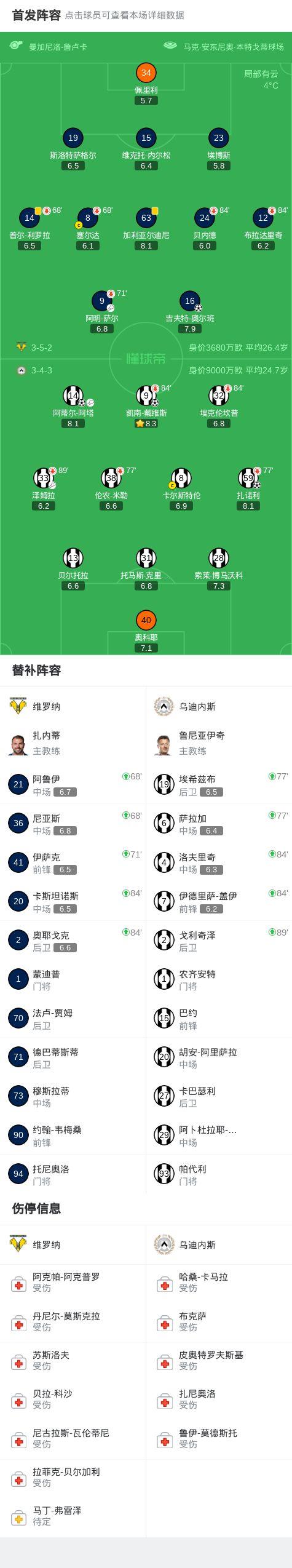 乌迪内斯31维罗纳,凯南戴维斯、扎诺利破门