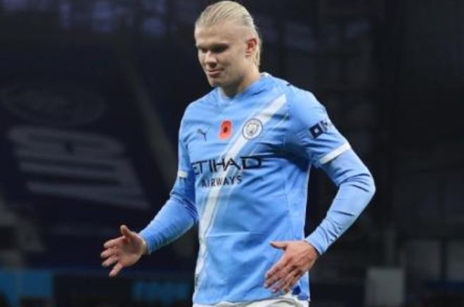 今晨曼城31樱桃,哈兰德两度单刀破门,第1个像C罗,第2个像梅西