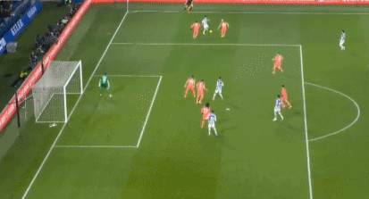 比赛一开场,疯狂的节奏就来袭!仅仅25秒,贡萨洛-格德斯右路内切传中,奥亚萨瓦尔头球破门,虽然因越位被吹,但也把蓝红军团吓出一身冷汗!随后堪称“噩梦级”的上半场正式登场!