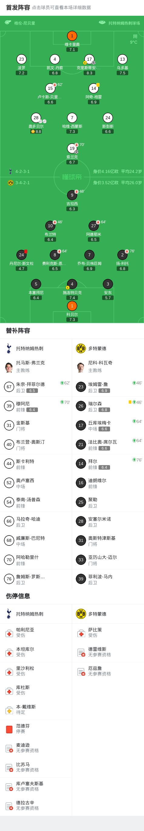第37分钟,索兰克禁区幸运脚后跟破门,热刺2-0多特