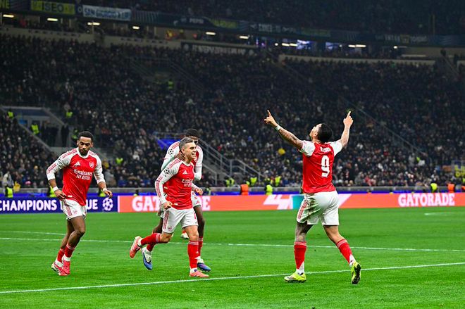 最终,在这场意甲和英超的巅峰对决中,国米主场1-3负于阿森纳,枪手7战全胜领跑。