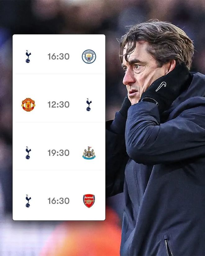 接下来,热刺的赛程堪称魔鬼。他们将在英超先后面对曼城、曼联、纽卡和阿森纳。周六《每日邮报》还曾透露,热刺CEO维奈·文卡特沙姆“希望支持弗兰克完成文化重建”。但成绩如此,高层还能忍多久?TEAMtalk本周就指出,弗兰克的下课只是“时间问题”,而非“是否会发生”。