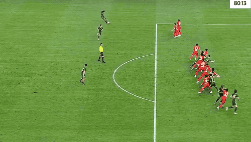 第81分钟,李提香主罚任意球,卢卡斯越位位置回撤,头槌破门,VAR介入,进球无效。