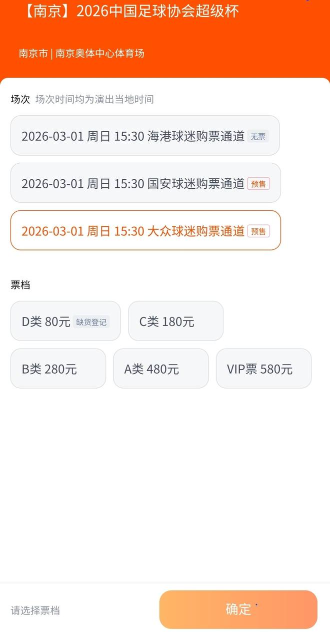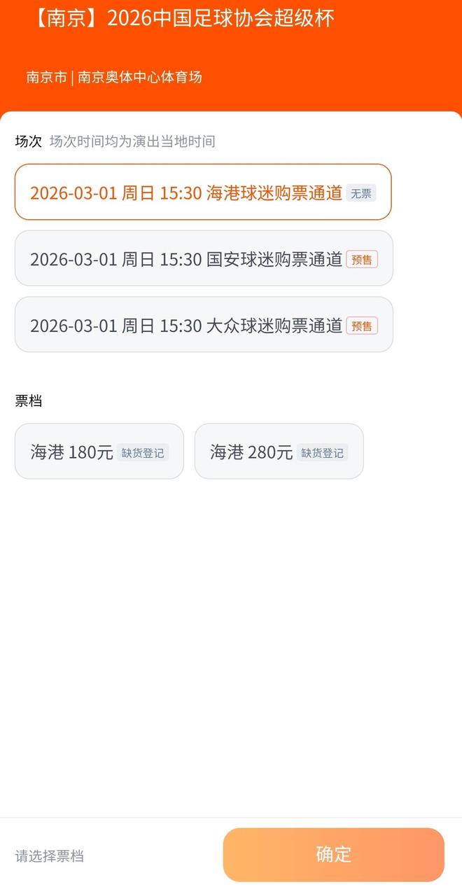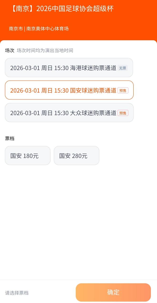 1月23日10:18,作为年度开篇大戏的2026中国超级杯球票正式开票。结果,名义主队上海海港的地缘优势明显,球票很快售罄;客队北京国安以及大众球迷的球票还在热销中。经过申办,南京奥