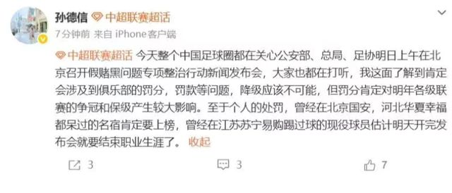 不过,既然是召开发布会公开宣布,那无论是名单公布还是处罚措施,都应该力度不小,不然也不会如此大张旗鼓。值得一提的是:孙德信给出了两个比较明确的信息,其一是曾在北京国安、河北华夏幸福待过的名宿肯定上榜,其二是曾在江苏苏宁踢过球的现役球员估计将要结束职业生涯。