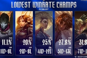 体育资讯1月26日讯 LPL官方发布赛事英雄以及队伍数据:26.01“版本答案”和“版本陷阱”英雄胜率如下图;*数据范围:第一赛段至今出场数不少于5场近