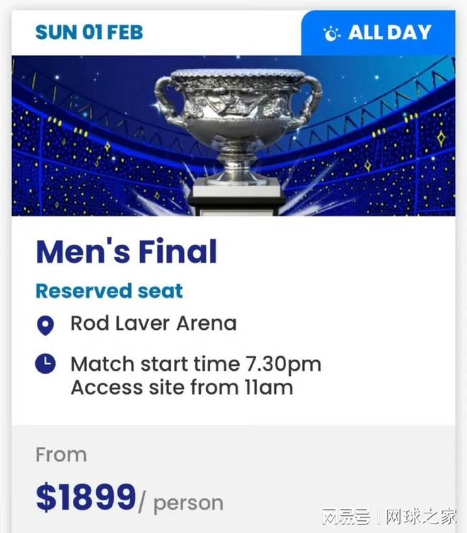 - 随着阿尔卡拉斯率先挺入澳网2026男单决赛,赛事门票市场也再度掀起波澜。据官方售票平台显示,男单决赛山顶票价...发表于: 02-01 09:11