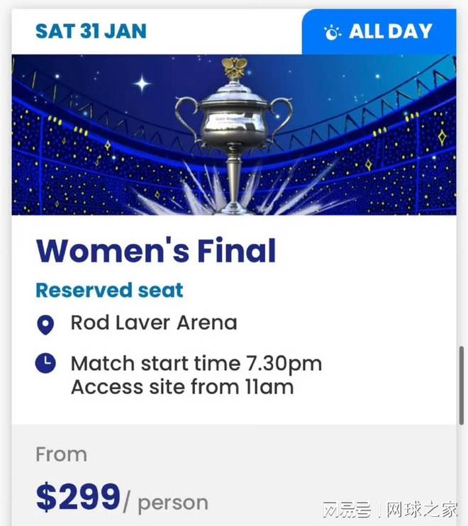随着阿尔卡拉斯率先挺入澳网2026男单决赛,赛事门票市场也再度掀起波澜。据官方售票平台显示,男单决赛山顶票价格已逼近2000澳元(约合人民币9300元)且一票难求。而值得一提的是,相形见绌之下,女单普通门票仅为299澳元,价差高达近7倍,这一现象引发广泛讨论。