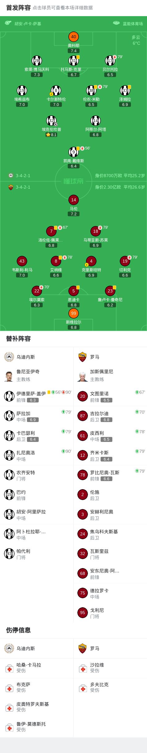 - 北京时间2月3日意大利足球顶级联赛联赛第23轮,乌迪内斯主场对阵罗马。上半场双方战平,阿塔、埃克伦坎普远射对...发表于: 02-03 07:42