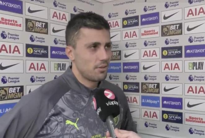 英超第24轮,曼城客场2-2战平热刺,赛后,曼城中场罗德里接受了Viaplay Fotball的采访。