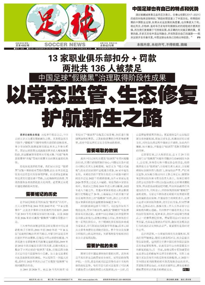 从2001到2026年,长达26年的时间有12年经历了“假赌黑”治理及后续影响,包括进行假赌黑治理的赛季,以及扣除联赛积分所影响的赛季,这对中国足球而言是非常惨痛的教训。